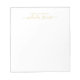 Bloc-notes professionnel moderne avec nom en or style de police script moderne avec texte personnalisé en or style de police sans serif moderne sur arrière - plan blanc. Remarque : Les détails du papier sont simulés dans l'illustration. Il n'y aura pas de métal sur ce produit.