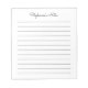 Simple Elegant Black Lined Personnalisé Bloc-notes Ces blocs-notes personnalisables sont simples pour un usage quotidien ou pour envoyer une note formelle à quelqu'un de votre bureau ou bureau. Vous pouvez également choisir une variété de couleurs dans notre boutique pour vos besoins de bureau à domicile. Personnalisez ces blocs-notes avec votre nom ou donnez comme cadeau et personnaliser avec vos amis ou les noms de famille afin qu'ils puissent les utiliser à leur domicile ou au bureau.