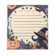 Ce bloc-notes enchanteur présente une scène d'Halloween fantaisiste avec une sorcière espiègle, un citrouille mousseux et des chauves-souris éffrayantes. Idéal pour parcourir vos listes de choses à faire d'Halloween, vos idées de planification de fête ou simplement exprimer votre esprit éffrayant, ce bloc-notes est un must pour la saison. Personnalisez votre bloc-notes avec votre nom ou un message éffrayant.