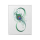 Le symbole de l'infinity with a bright, green, artistic peacock feather on a white background. Tattoo style.