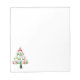 Bloc-notes blanc de 5,5 po x 6 po avec une image du sentiment "Un très joyeux Noël" en lettres rouges et vertes enneigées formant la forme d'un arbre de Noël. Voir l'ensemble de la collection de Bloc-notes de vacances dans les TOUCHES SPÉCIALES | Section Favoris.