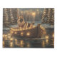 Jetez un coup d'oeil à la magie de la saison des Fêtes avec cette illustration magnifiquement détaillée, montrant un chien fier assis dans un bateau à la décoration festive, glissant à travers un lac serein de Noël. Les lumières scintillantes des pins voisins se reflètent dans l'eau, projetant une lumière chaude et festive qui renforce l'ambiance cosy. Des ornements pendent des côtés du bateau, tandis que des lanternes brillantes éclairent le chemin, créant une scène qui capture l'essence véritable de la chaleur et de la joie de Noël. Cette oeuvre nostalgique apporte une touche de magie de vacances à tout espace, parfait pour ceux qui chérissent l'esprit de la saison.