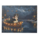 Jetez un coup d'oeil à la magie de la saison des Fêtes avec cette illustration magnifiquement détaillée, montrant un chien fier assis dans un bateau à la décoration festive, glissant à travers un lac serein de Noël. Les lumières scintillantes des pins voisins se reflètent dans l'eau, projetant une lumière chaude et festive qui renforce l'ambiance cosy. Des ornements pendent des côtés du bateau, tandis que des lanternes brillantes éclairent le chemin, créant une scène qui capture l'essence véritable de la chaleur et de la joie de Noël. Cette oeuvre nostalgique apporte une touche de magie de vacances à tout espace, parfait pour ceux qui chérissent l'esprit de la saison.