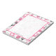 Un bloc-notes à thème couture composé d'une machine à coudre, de bobines de fil, d'un coussin à épingle, de ciseaux, de nuances de tissu et d'aiguilles à coudre. Le design est assorti à des couleurs roses.