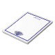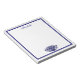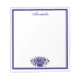 Un bloc-notes personnalisé avec d'élégantes lettres de script et de l'art vintage en bois d'un panier de marguerites et autres fleurs en bleu et blanc et une bordure bleue assortie.