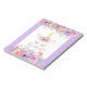 Cette licorne est ornée de violettes d'aquarelle violette, bleu et rose vif, d'étoiles dorées et d'une corne d'or brillante. Ce design fait honneur à toute une série de produits d'anniversaire, y compris des fournitures de base, ainsi que des cadeaux personnalisés créatifs avec ce thème magique.