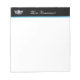 Bloc-notes en blanc avec une fine ligne d'accent bleu sous une bande d'accent noir avec une couronne de reines de concours et un titre. Customisez ce point et changez le texte à votre place.