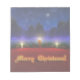 Scène de Noël en 3D créée en Vue, avec des bougies posées sur le rouge devant une guirlande de pins, rehaussées de rouge et d'or. Dans l'arrière - plan enneigé sont des sapins bleu-vert contre un ciel fractal tourbillonnant parsemé d'étoiles. Une étoile étincelante unique domine le ciel nocturne. Devant les décorations de vacances se trouve un salut Joyeux Noël doré.