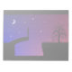 Dessin d'un homme debout en silhouette sur un pont cassé, regardant à travers le golfe où se trouve un arbre à saule solitaire. Dans le ciel derrière lui se trouve la lune et les étoiles dans un ciel bleu foncé, qui s'estompe vers le rouge à l'extrémité pour le début du lever du soleil. Illustration des émotions de l'espoir, du désespoir et de la solitude à mesure qu'il atteint le bout du chemin et trouve le chemin impraticable.