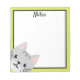 Un mignon bloc-notes avec un curieux chat gris, prêt à regarder chaque note écrite sur le pad.
