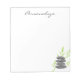 Bloc-notes personnalisé avec empilement de galets zen art. Pierres de galets Zen empilant et design feuille de bambou vert. Elégant imprimé d'art zen pour cours de méditation, salon de spa de beauté, centre spirituel, massothérapeute, thème mariage, soirée nature relaxante, bouddhisme, yoga, enseignant holistique, coach de vie, pleine conscience, affaires de santé mentale, boutique, entreprise etc. Roches empilées équilibrant les unes sur les autres. Image de sérénité. Ajoutez votre propre nom personnalisé, des lettres initiales monogrammes, une citation inspirante, un dicton amusant, une citation comme Namaste etc. Accessoire de bureau de tablette classique pour lui ou elle.