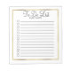 Blanc personnalisé avec cadre doré "To Do" liste avec bloc-notes doublé avec cases à cocher. Le texte, la police, la taille de police, la couleur et le placement sont entièrement personnalisables.