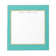 Dispose d'un cadre bordé d'or, contre un arrière - plan motif de parties scintillant turquoise et or. Personnalisez le bloc-notes avec votre propre nom ou texte.
