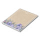 Bloc-notes floral de Whimsical avec une bordure inférieure de fleurs d'aquarelle pourpres et de feuilles vert pâle. L'arrière - plan est un graphique vintage en papier parchemin avec une bordure blanche. En haut, un modèle personnalisable vous permet d'ajouter votre nom ou de laisser comme notes. Un bloc-notes fleuri ceinturon à l'ambiance artistique qui fait un cadeau rustique inspiré par le pays.