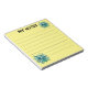 Un bloc-notes jaune clair avec des lignes verticales noires et une illustration montrant un beau bouquet de feuilles tropicaux vert verdoyant en haut à droite et en bas à gauche.