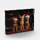 Une scène enchanteresse capte l'essence de l'esprit de fête et de douceur tandis que des compagnons furieux ornés de casquettes du Père Noël se rassemblent autour d'une cheminée crépitant. La chaleur qui émane du foyer crée une atmosphère douce pour ces adorables canines, tandis que des bas festifs pendent dans l'arrière - plan, renforçant l'ambiance joyeuse. Cette charmante illustration représente une image intemporelle de compagnie et de joie festive, parfaite pour célébrer la saison des Fêtes avec une touche de charme canin