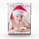 Beau arc-en-ciel Joyeux bloc photo de Noël avec belle typographie arc-en-ciel cursive sur votre photo bébé. Ce cadeau de photo moderne de vacances nouveau-né présente une superbe présentation de script coloré et le nom de votre famille en rouge sur le fond de l'image de Noël.