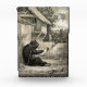 Artist: William Holbrook Beard. Pen and ink drawing, c. 1860. A bear chained in a barnyard holds a surprised dog while a donkey looks on from over the fence. Published as a card by Currier & Ives; the original caption to the image was the donkey saying: "I told you so!" Whimsical black and white drawing in sepia-tone.