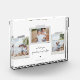 Bloc photo de sentiments gais. Fonctionnalités, 3 photos encadrées avec accents de ruban lavi style scrapbook, deux lignes de texte modèle gris pour votre message et des noms avec détails coeur gris correspondant.