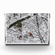 un cardinal mâle vibrant perche parmi les branches enneigées et hivernales