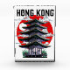 Logo rétro de Hong Kong avec un temple asiatique traditionnel.