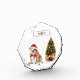 Un bulldog anglais, à côté d'un sapin de Noël décoré, est muni d'une cravate d'arc rouge et d'un chapeau de Père Noël. Envoyez ce drôle cadeau de Noël de vacances comme vous souhaitez un Nouvel An qui vaut la peine d'aboyer!