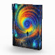 This ethereal artwork captures a solitary figure walking toward a radiant, swirling galaxy filled with vibrant rainbow light. The glowing cosmic vortex illuminates the scene, creating a powerful sense of wonder, mystery, and infinite possibility.