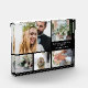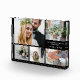 Bloc photo moderne pour célébrer votre mariage avec un collage photo de 5 et vos noms et date mariage dans une élégante typographie blanche contre un arrière - plan noir.