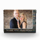 Élégant Merci Rustique Script De Mariage Favoriser Photo Block. Un bloc photo de faveur mariage avec une photo de mariage, les noms de mariée et de mariée et une date de mariage. L'arrière - plan est rustique, en bois foncé. Un bloc photo de remerciement élégant et élégant - parfait comme un cadeau pour vos invités. Le texte du Merci est dans un script moderne. Ajoutez votre photo de mariage préférée dans le modèle et faites un cadeau de faveur personnel.