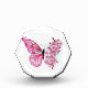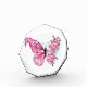 Flower arrangement of pink butterfly with rose Japanese cherry blossoms on white background.