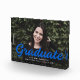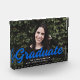 Célébrez la réussite de votre diplômé avec une photo tenue de diplôme personnalisée. Le bloc photo présente la photo horizontale du diplômé avec "Graduate" en gras bleu. Personnalisez le bloc photo du diplôme en ajoutant le nom du diplômé, l'école et l'année de diplôme.