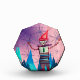 Dessin d'aquarelle avec un robot, flocons de neige et montagnes.