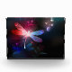 Lumineuse, volante, libellule rouge, avec des ailes transparentes et détaillées sur arrière - plan sombre, nocturne, lumineux avec plantes tropicaux et lucioles. libellule rouge.