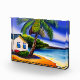 Bloc Photo Maison de plage blanche et eau bleue