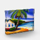 Palmiers, océan et plage maison aquarelle tropicale ai généré art.