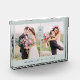 Ce bloc photo élégant et moderne comprend deux de vos photos personnelles, avec vos monogrammes et une tache pour vos noms sur un arrière - plan doux et vert clair.