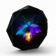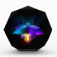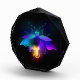 Vieux, luciole mécanique avec ampoule et ailes fines brille orange, violet, turquoise sur arrière - plan noir. Style Steampunk.