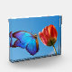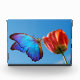 Bloc Photo Papillon bleu et tulipe rouge
