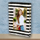 Des points d'or sur des rayures noires et blanches mettent en évidence votre photo préférée sur ce bloc photo acrylique. Idéal comme cadeau ou pour afficher votre photo préférée dans votre propre maison.