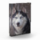 Cette peinture numérique représente un Husky sibérien debout sur la neige, sa fourrure brillant de reflets glacés tandis que le paysage hivernal s'étend sans fin derrière lui. Les yeux expressifs du chien attirent l’attention du spectateur.