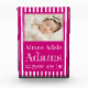 Célébrez votre paquet de joie avec style grâce à ce bloc photo personnalisé de statistiques de naissance. Personnalisez avec une photo de nouveau-né et des détails dans une police dessinée à la main amusante, sur un fond magenta coloré avec des accents rayés. Un souvenir moderne et robuste qui se tient magnifiquement sur n'importe quelle étagère ou table.