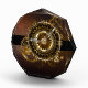 Antique, fantastic watches with gold and brass gears on a brown, rusty background. Steampunk style.