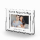 Ce simple bloc photo en Fête des pères noire et blanche pour la première fois père dispose d'un arrière - plan blanc simple avec une typographie de texte de machine à écrire vintage noire qui dit "Première Fête des pères." Ajoutez une photo du nouveau père et du bébé, avec une pièce à personnaliser avec les noms et l'année.