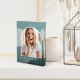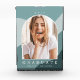 Créez une tenue de graduation mémorable et unique avec ce bloc acrylique avec une photo verticale ou portrait orientée dans une disposition unique en arche, sur un arrière - plan de rayures ondulées organiques dans les tons menthe et vert épinette. "Graduate" apparaît en dessous, avec votre école ou collège. Personnalisez avec votre année de graduation courbée à travers le sommet.