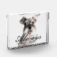Chérissez les merveilleux souvenirs pour toujours avec notre bloc photo souvenir personnalisé. Notre design comprend un espace réservé photo complet. Customisez avec le nom de votre animal de compagnie. "Toujours dans nos coeurs" est affiché sur l'image.