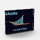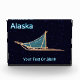 Faites-leur savoir ce que vous faites pour vous amuser pendant l'hiver. Un traîneau à chien superposé sur un arrière - plan étoilé. Lecture de texte, "Alaska" apparaît en bleu et blanc brillant. Vous pouvez ajouter votre propre texte supplémentaire à la fois sur le sac de traîneau et au bas.