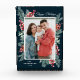 Elégant bloc photo de vacances avec votre photo de famille encadrée par des baies sèches couleur rouge avec des bouquets de pin vert et un feuillage avec un arrière - plan de marine. "Happy Holidays" est affiché en haut dans un élégant script de calligraphie blanche. Personnalisez le bloc photo de la fête botanique en ajoutant votre nom et l'année. Conçu pour coordonner avec notre collection de vacances Holly et À feuillage persistant.