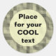 Custom sticker template add your own words, name, slogan etc. If you press the "customize it" button, you can also change the font style and size. The background graphic is 1200 pixels so compatible with all button sizes, even the colossal 6" size.