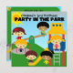 Blond Girl Party dans le parc invitations d'anniversaire que vous pouvez facilement customiser avec le nom de votre enfant et les détails de votre fête d'anniversaire avant de commander. Il y a plusieurs enfants qui jouent dans le parc sur le toboggan, le joyeux tour, et le teeter, et une fille blonde sur une balançoire à l'arrière du invitation !