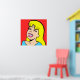 Cette affiche Blonde Bombshell Comic Strip propose un dessin humoristique d'une belle fille blonde sur un arrière - plan rouge. Elle a un nez de bouton, des lèvres roses pleines et les sourires les plus brillants. Ses yeux sont fermés, probablement à cause du poids de ses cils noirs et luxuriants. Elle a une frange épaisse de bangs et de cheveux jaunes qui s'étend au-delà de ses épaules. Sa chemise d'aqua est à peine visible au bas du design. On dirait qu'elle n'a pas de soins dans le monde. Et, vraiment, elle ne devrait pas avoir de soins dans le monde. Après tout, c'est une caricature.